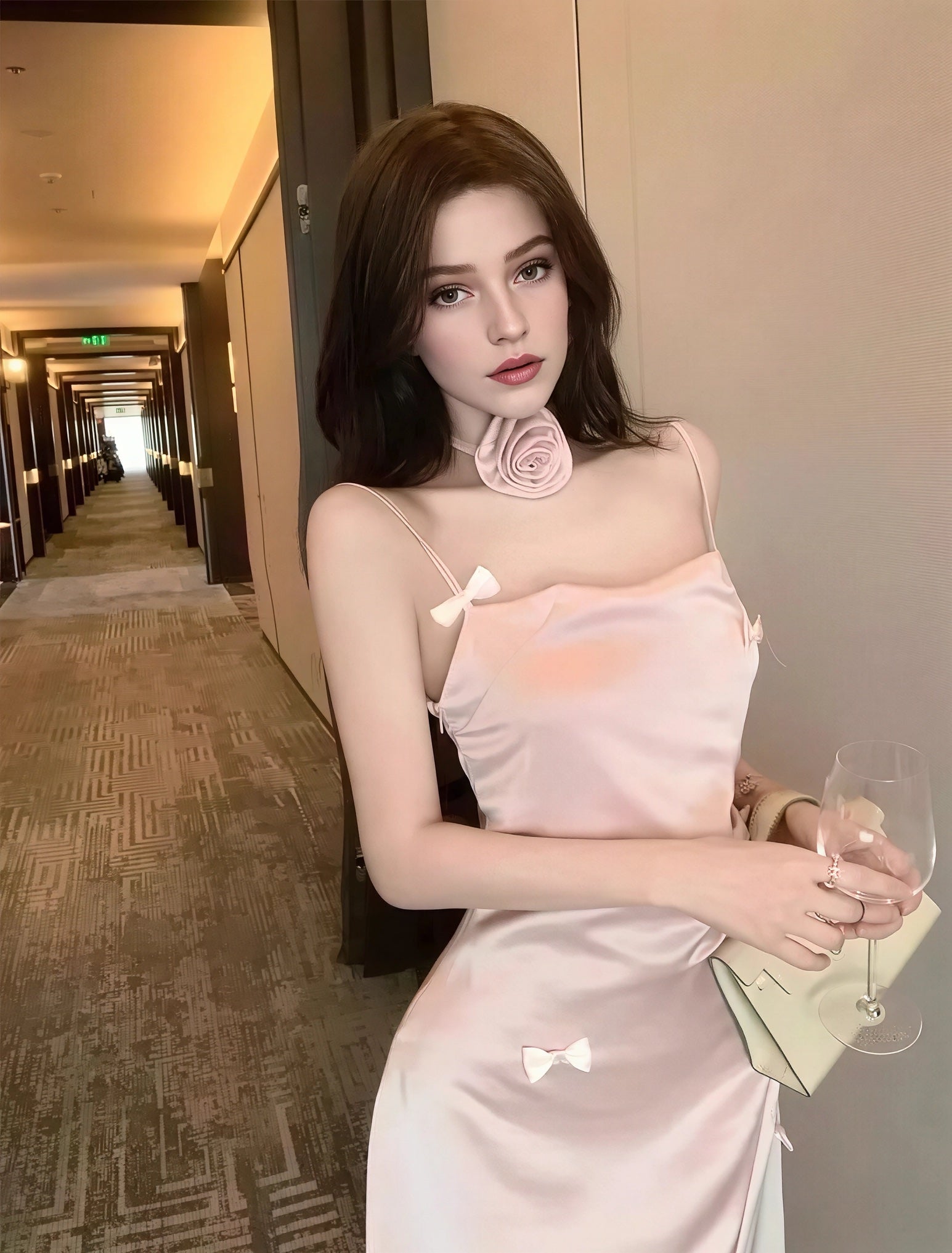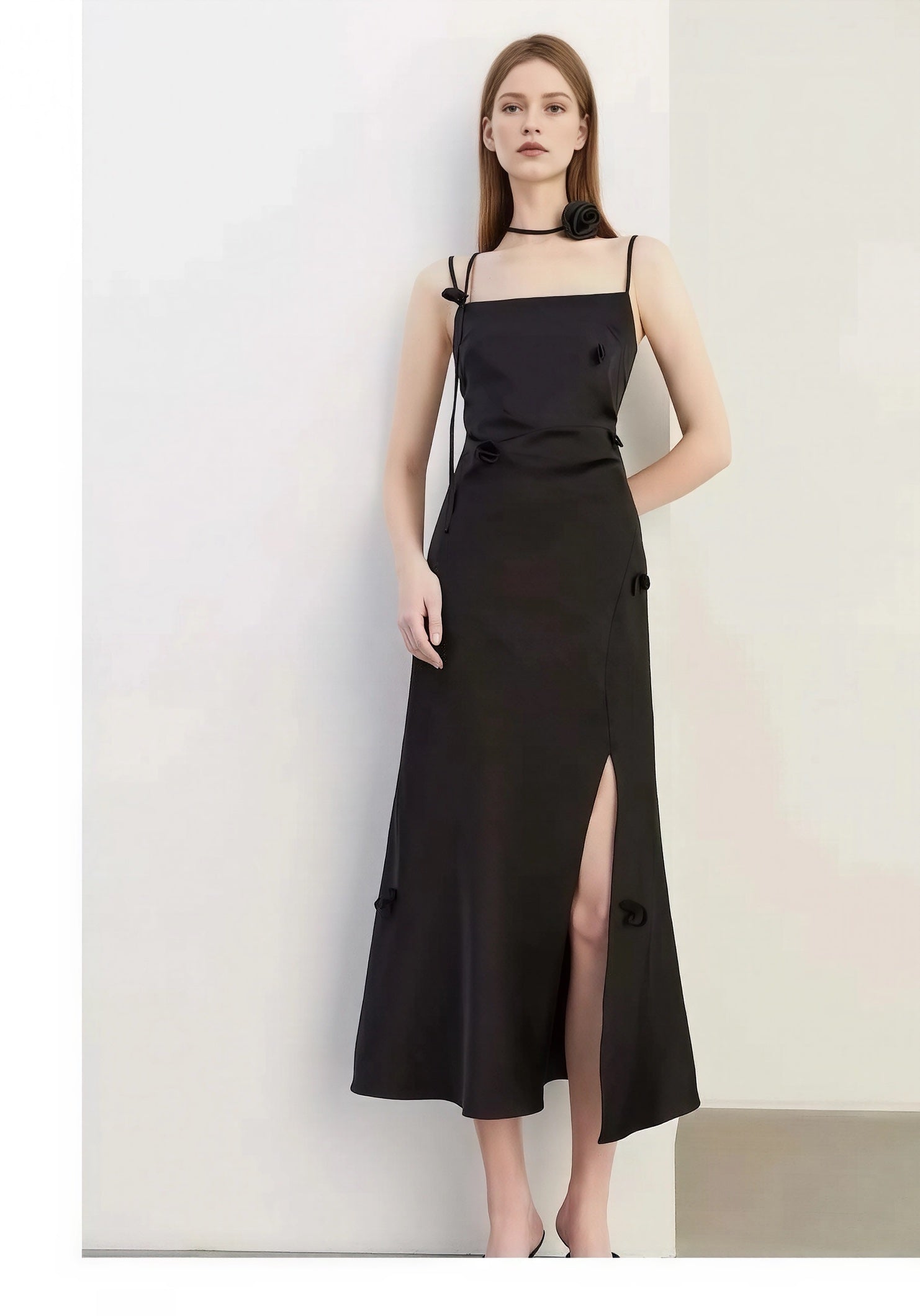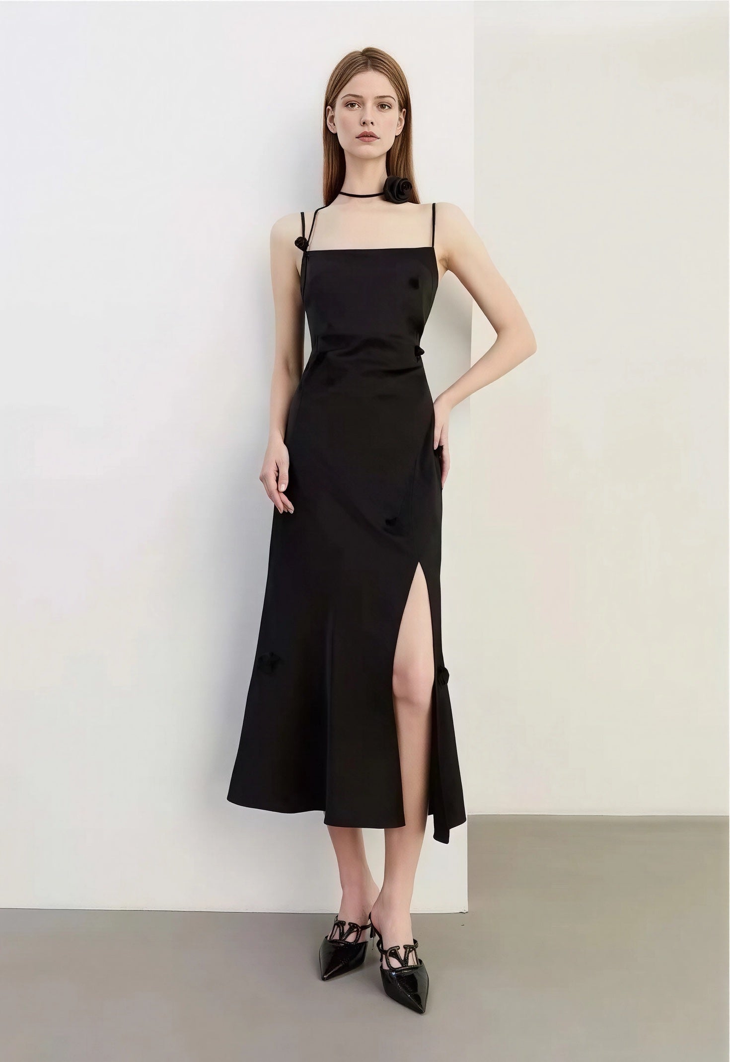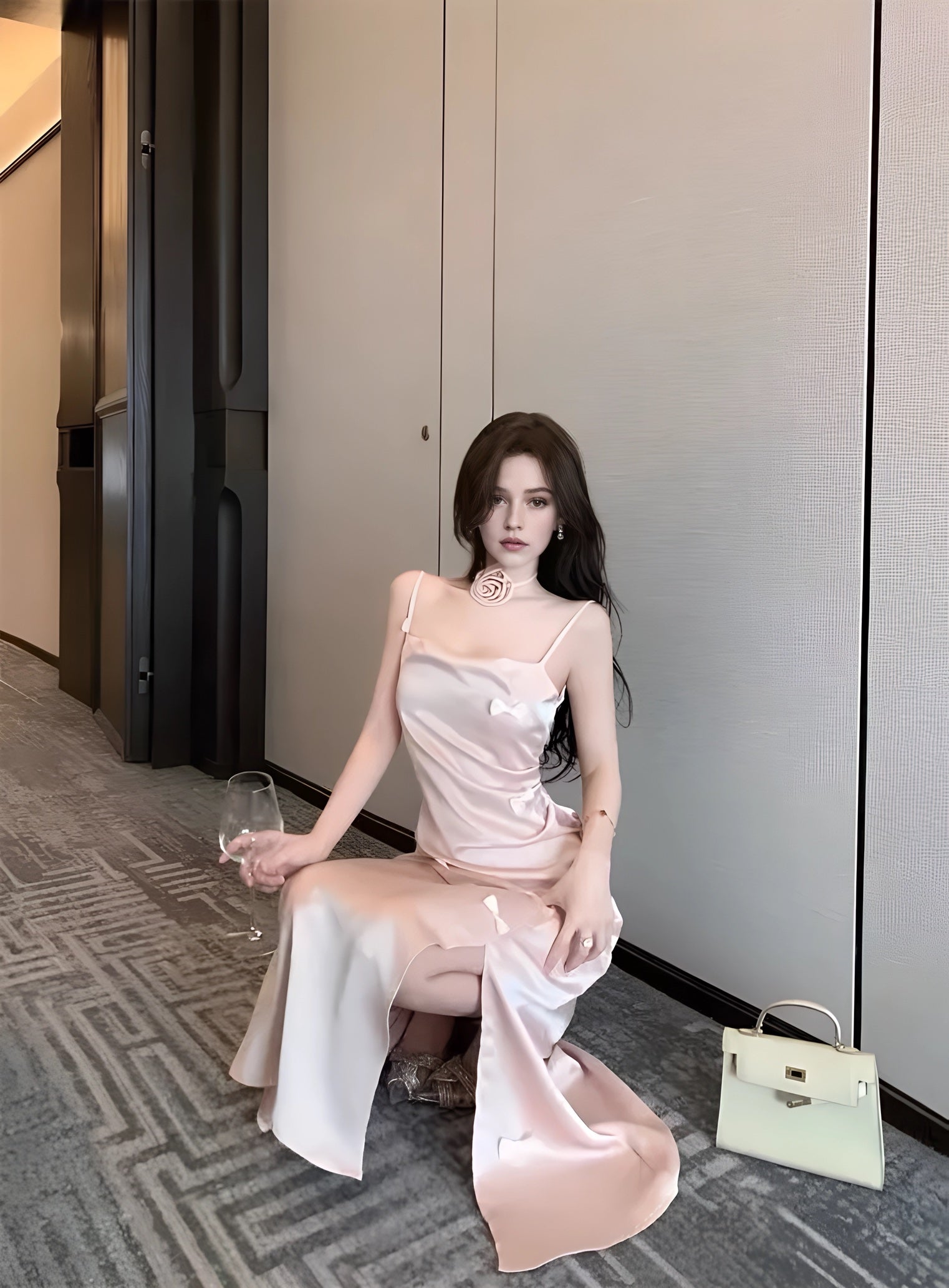 This full-length gown features a straight neckline, slender straps, and a fitted bodice that flows into a long, column skirt. Its minimal design allows the colors to shine: offered in white, black, pink, maroon, and champagne. Perfect for evening galas, modern receptions, or any occasion where intelligence and allure walk hand in hand.