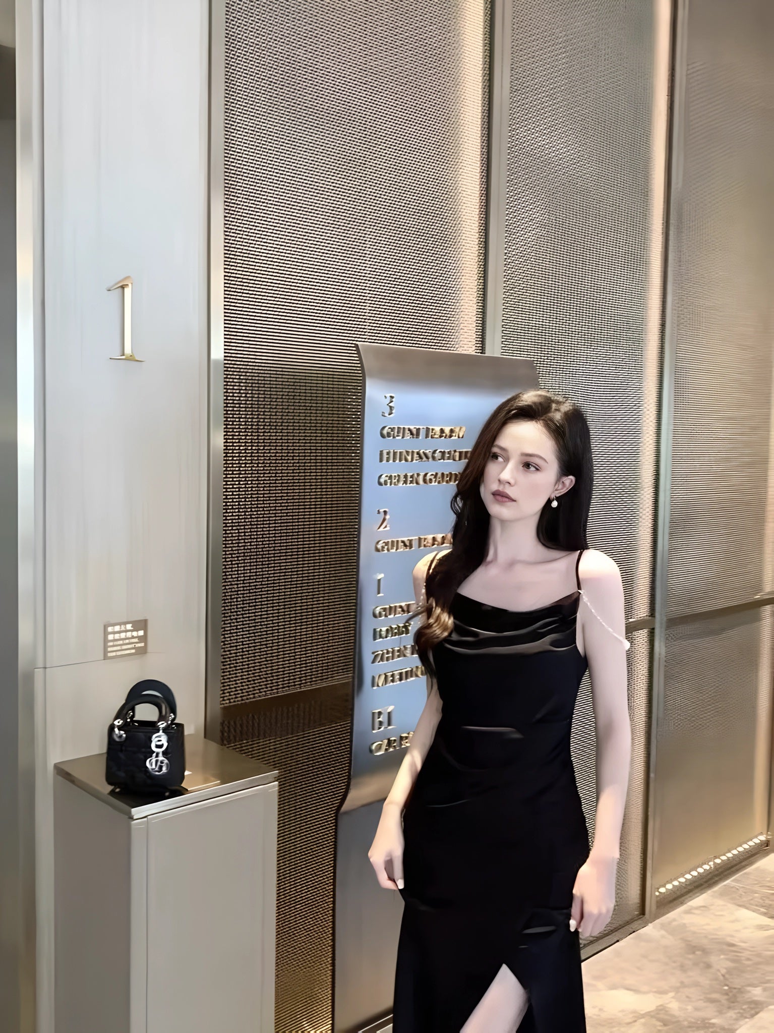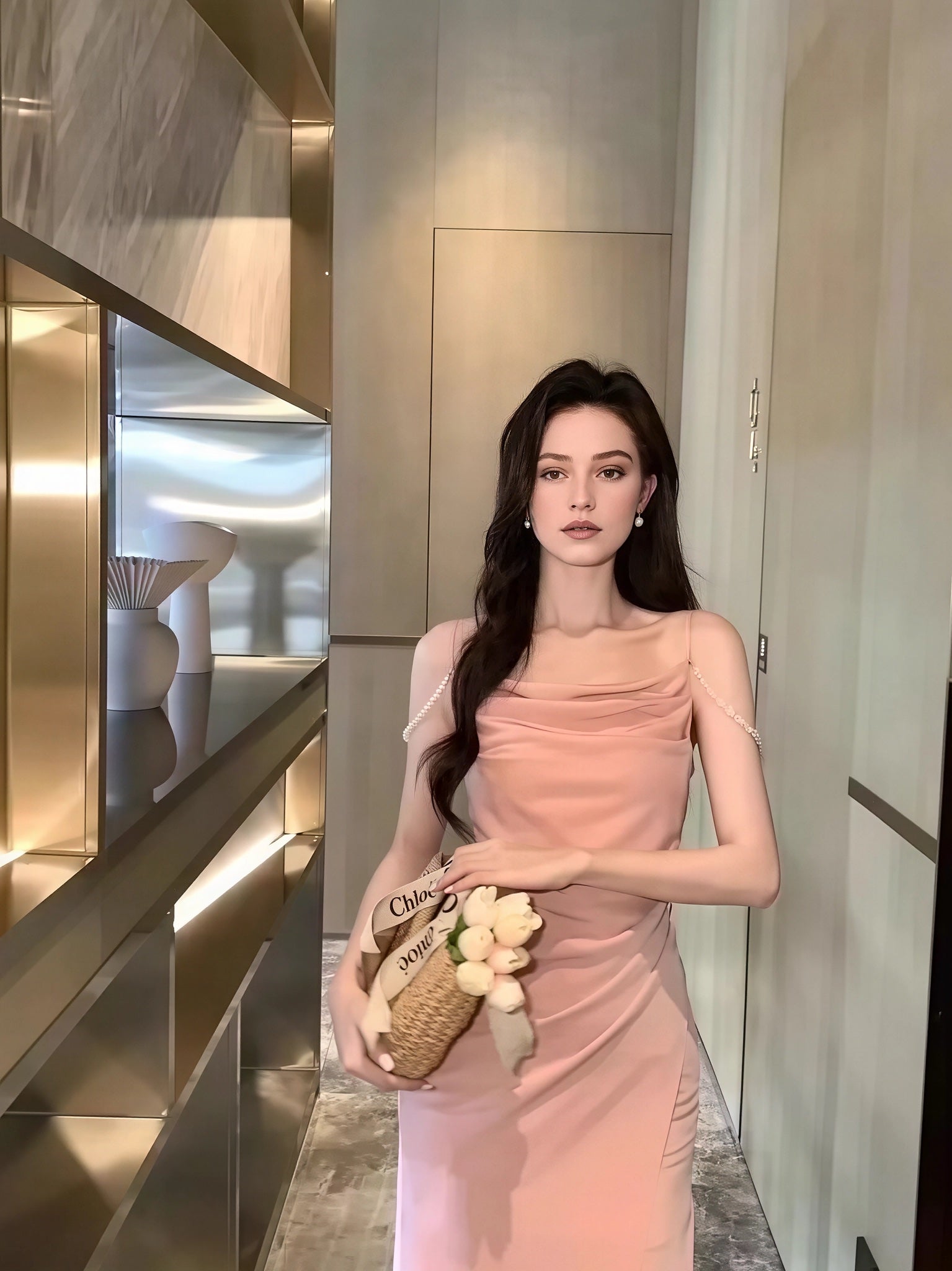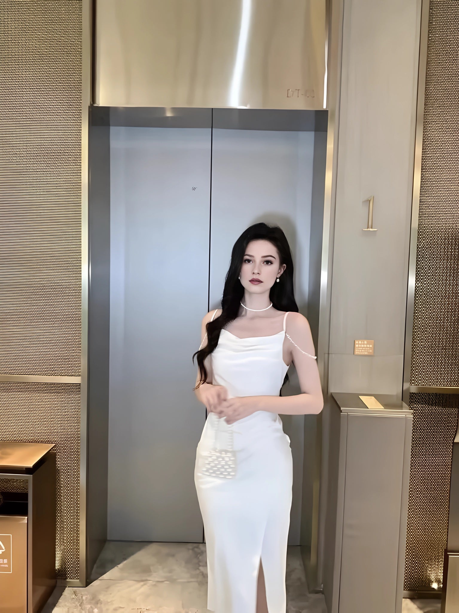 The Naomi Watts dress is modern refinement — understated yet radiant, with an effortless balance of poise and allure. Its asymmetrical neckline and delicate strap details create quiet drama, while its fitted satin silhouette speaks in clean, confident lines.